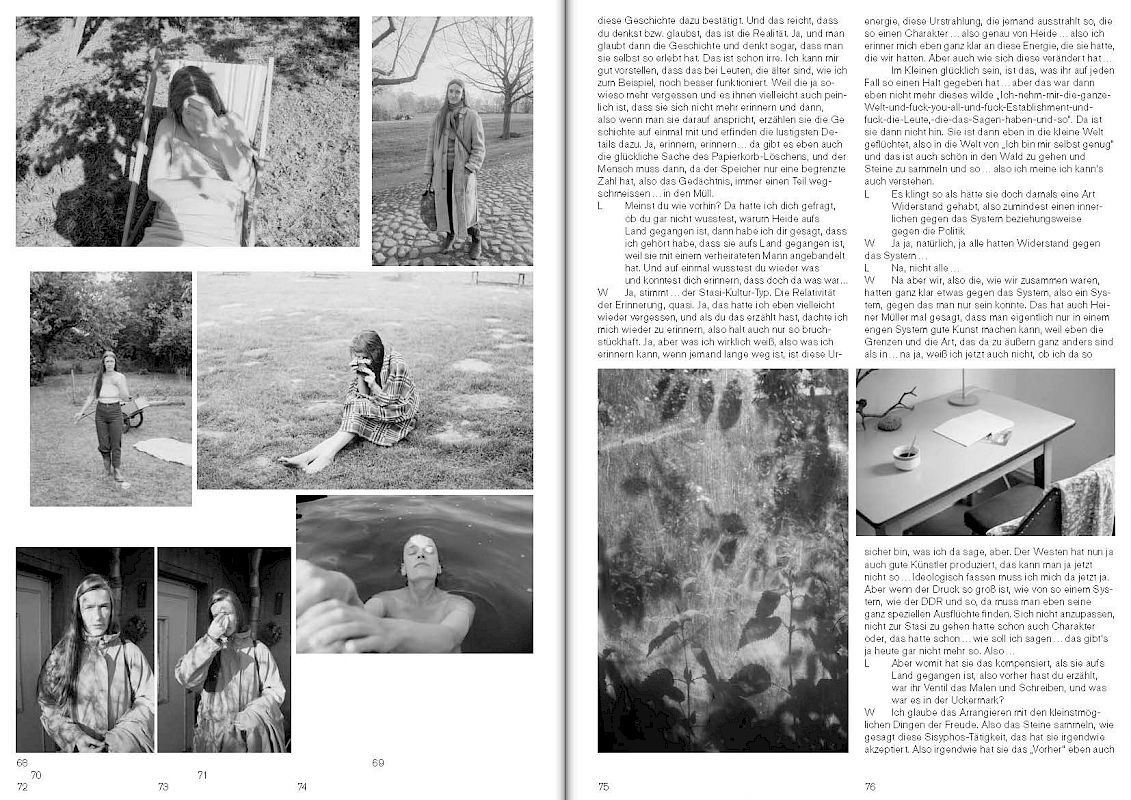 In Heft 3 begegnen wir schließlich Heides Blick auf sich selbst durch die Kamera. Wir sehen Heide immer alleine, in ihrer Wohnung, im Garten, der Natur und in ihrem Spiegel. Ohne Zweifel, hier findet eine Inszenierung statt – doch wo hört sie auf und wo beginnt der Bereich des Wirklichen? Wie fest ist dieses Bild, das ihre Selbstporträts vermitteln, in der Wirklichkeit verankert? Beweisen diese Fotografien die Existenz der Heide Peschke oder sind sie Handlanger eines Schauspiels?