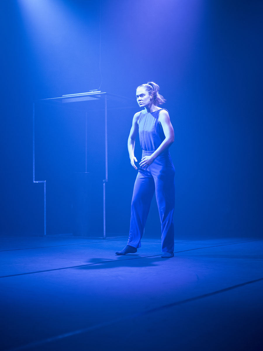 Nach der Performance Gloria beschäftigen sich Eva Borrmann, Larissa Rosa Lackner und Florina Speth erneut mit der in unser Privatleben eingreifenden Überwachungsmethodik und untersuchen die Auswirkungen auf unser Körpergefühl. Die Tänzerin dient als Versuchsobjekt einer von Selbstoptimierung gesteuerten Außenwelt. Sie bewegt sich auf der Fläche einer kapitalistisch gesteuerten Weltmaschine. Floskelhafte Ströme aus Texten der Positive Psychology, Selbstoptimierungsratgebern sowie hippen Cocreation- Snaps aus dem Finanzsektor illustrieren die Landschaft der Weltumgebung akustisch.